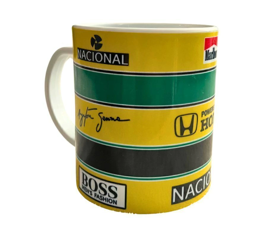 Rendí homenaje a uno de los más grandes pilotos de todos los tiempos con esta taza personalizada de Ayrton Senna, un ícono eterno de la Fórmula 1. Con un diseño inspirado en su casco, sus colores y su legado, esta pieza es perfecta para quienes llevan la pasión por la F1 en el corazón.